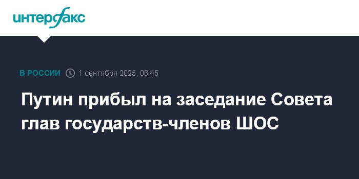 Москва. 1 сентября. INTERFAX.RU - Президент РФ Владимир Путин прибыл на заседание Совета глав государств-членов ШОС, которое в ближайшее время начнется в Тяньцзине.