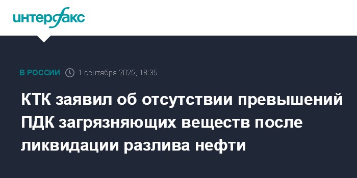 КТК заявил об отсутствии превышений ПДК загрязняющих веществ после ликвидации разлива нефти