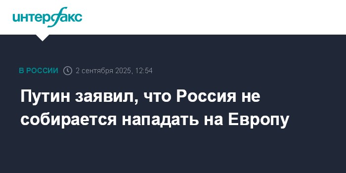 Москва. 2 сентября. INTERFAX.RU - Россия не намерена нападать на Европу, рассуждения на эту тему являются провокацией или проявлением некомпетентности, заявил президент РФ Владимир Путин.