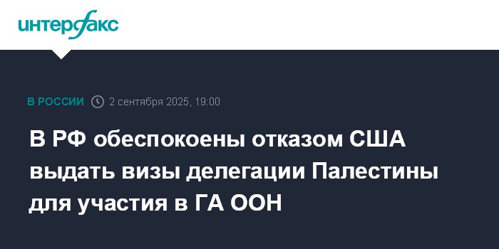 Москва. 2 сентября. INTERFAX.RU - В Москве обеспокоены отказом США выдать визы делегации Палестины для участия в Генассамблее ООН, сообщили в МИД РФ.