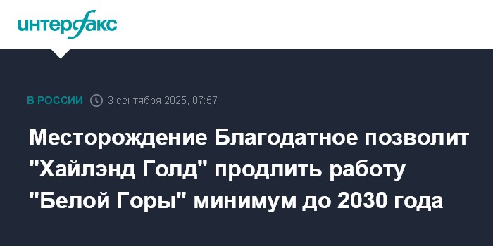 Месторождение Благодатное позволит "Хайлэнд Голд" продлить работу "Белой Горы" минимум до 2030 года