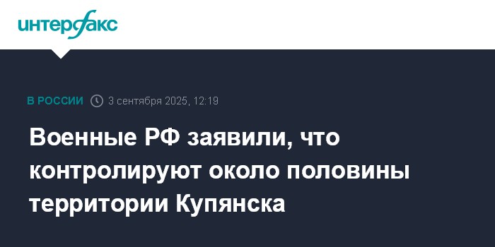 30 августа начальник Генштаба РФ Валерий Герасимов заявил: "Соединения и воинские части группировки войск "Запад" практически полностью блокировали город Купянск и освободили около половины его территории".