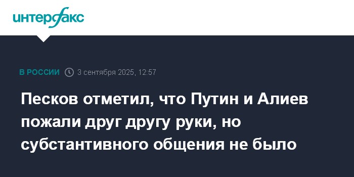 Песков отметил, что Путин и Алиев пожали друг другу руки, но субстантивного общения не было