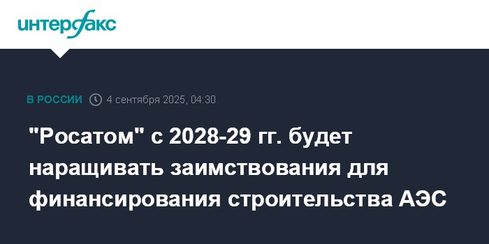 "Росатом" с 2028-29 гг. будет наращивать заимствования для финансирования строительства АЭС