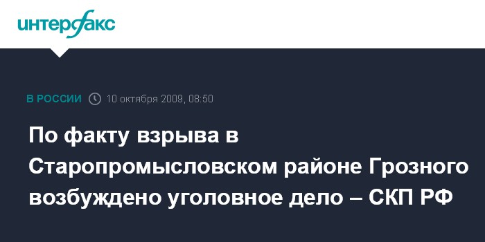 По факту взрыва в Старопромысловском районе Грозного возбуждено уголовное дело – СКП РФ