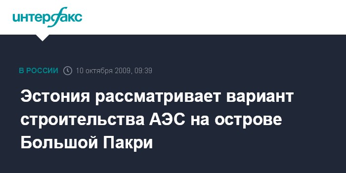 Таллин. 10 октября. ИНТЕРФАКС - В Эстонии на острове Большой Пакри (Suur Pakri) в ближайшие дни начнутся строительные и гидрогеологические исследования, необходимые для определения места сооружения будущей атомной электростанции.