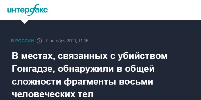 Москва. 10 октября. INTERFAX.RU - По информации еженедельника "Зеркало недели", останки двух человеческих тел были найдены в том месте, где несколько недель назад был обнаружен череп убитого 8 лет назад известного на Украине журналиста Георгия Гонгадзе.