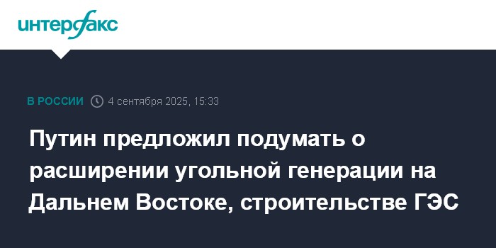 Путин предложил подумать о расширении угольной генерации на Дальнем Востоке, строительстве ГЭС