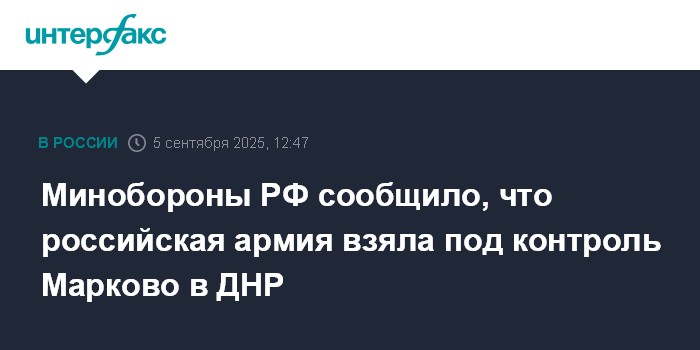 Москва. 5 сентября. INTERFAX.RU - Группировка войск "Южная" взяла под контроль село Марково в ДНР и нанесла удары по 12 украинским бригадам.