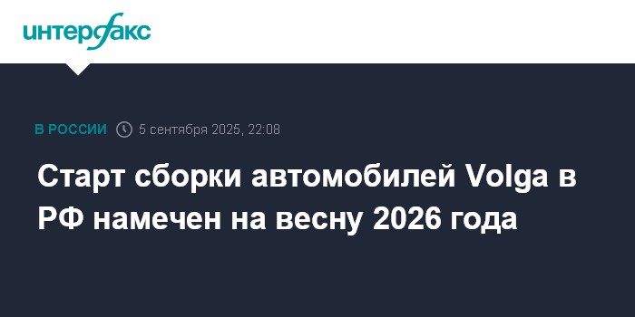Старт сборки автомобилей Volga в РФ намечен на весну 2026 года