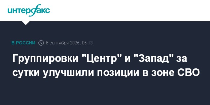 Москва. 6 сентября. INTERFAX.RU - Группировки войск "Центр" и "Запад" в течение суток заняли более выгодные позиции, в глубину обороны украинской армии продвинулась группировка "Восток", сообщили их пресс-центры в субботу.