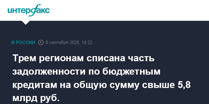 Трем регионам списана часть задолженности по бюджетным кредитам на общую сумму свыше 5,8 млрд руб.