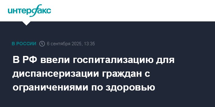 В РФ ввели госпитализацию для диспансеризации граждан с ограничениями по здоровью