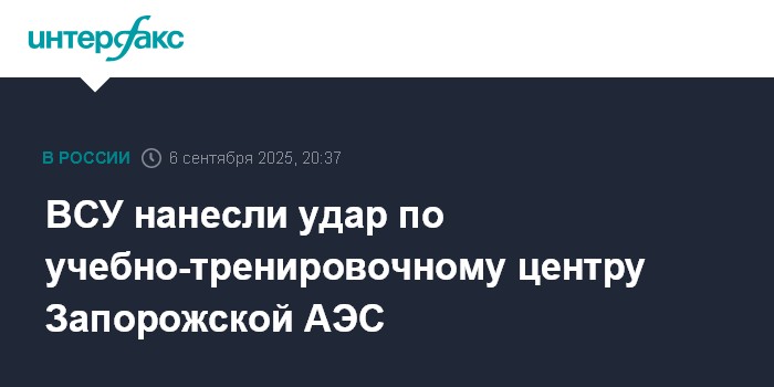 Москва. 6 сентября. INTERFAX.RU - ВСУ атаковали учебно-тренировочный центр Запорожской АЭС, обошлось без разрушений, сообщили представители ЗАЭС в субботу.