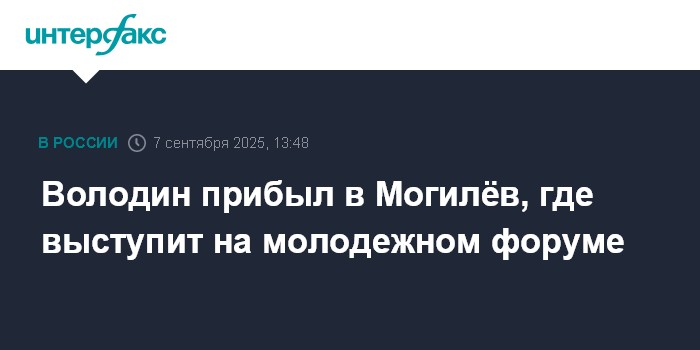 Володин прибыл в Могилёв, где выступит на молодежном форуме