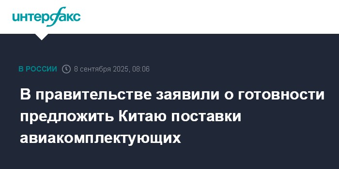 В правительстве заявили о готовности предложить Китаю поставки авиакомплектующих