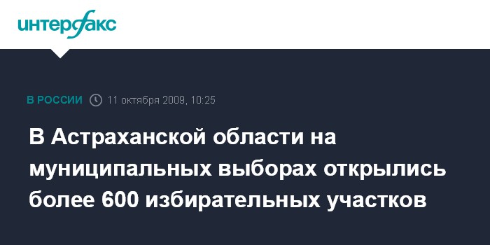 Москва. 11 октября. INTERFAX.RU - В Астраханской области в воскресенье открылся 601 избирательный участок, на которых местные жители проголосуют за кандидатов в мэры Астрахани, глав пяти районов области, а также руководителей ряда сельских муниципальных образований.