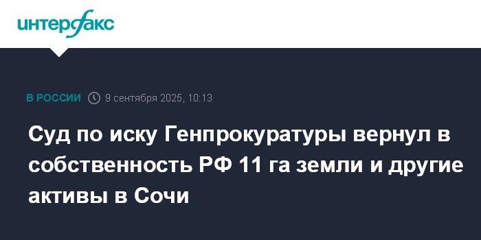 Суд по иску Генпрокуратуры вернул в собственность РФ 11 га земли и другие активы в Сочи