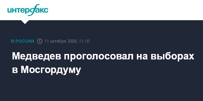 Москва. 11 октября. INTERFAX.RU - Президент РФ Дмитрий Медведев проголосовал в воскресенье утром на выборах депутатов Московской городской думы.
