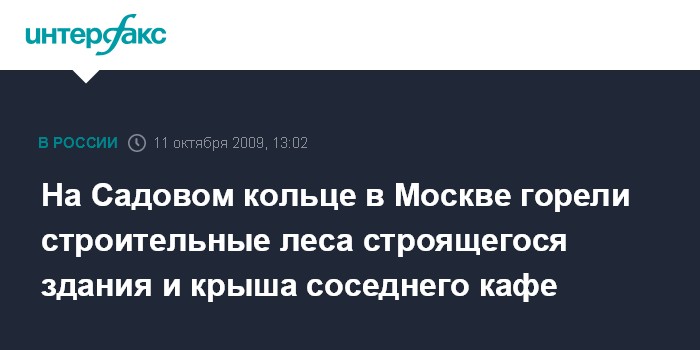 Москва. 11 октября. INTERFAX.RU - В центре столицы по адресу Новинский бульвар, 8, в воскресенье загорелись строительные леса возводимого там семиэтажного здания, сообщил "Интерфаксу" начальник пресс-службы ГУ МЧС по Москве Евгений Бобылев.