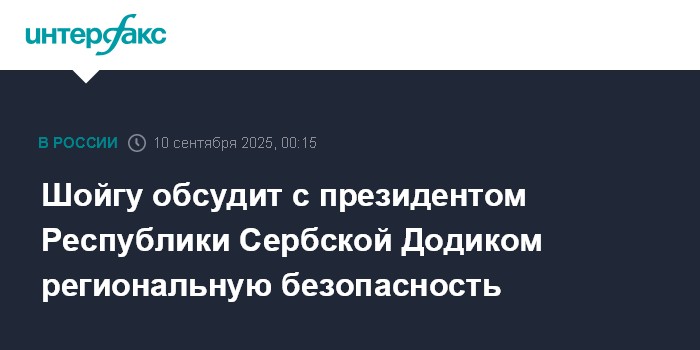 Шойгу обсудит с президентом Республики Сербской Додиком региональную безопасность