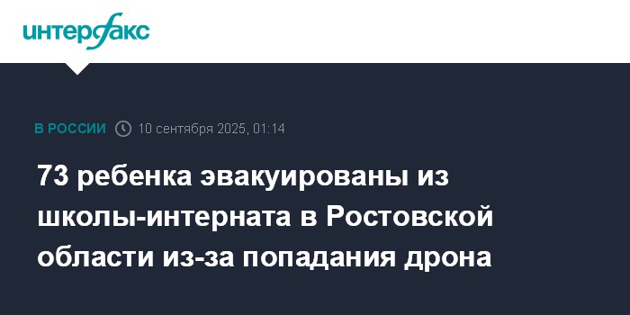73 ребенка эвакуированы из школы-интерната в Ростовской области из-за попадания дрона