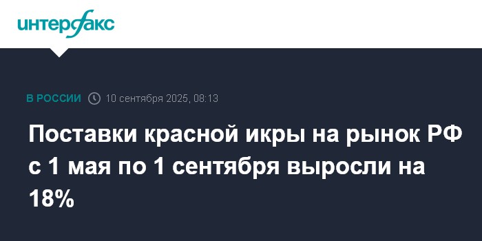 Москва. 10 сентября. INTERFAX.RU - Рост вылова тихоокеанских лососей в этом году привел к увеличению поставок красной икры на рынок РФ.