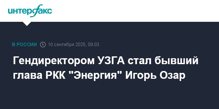Гендиректором УЗГА стал бывший глава РКК "Энергия" Игорь Озар
