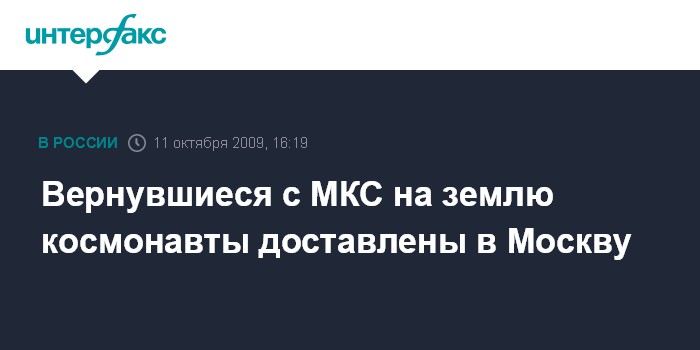 Москва. 11 октября. INTERFAX.RU - Космонавт Геннадий Падалка, астронавт НАСА Майкл Баррат и канадский космический турист Ги Лалиберте, вернувшиеся в воскресенье на землю, доставлены транспортным самолетом из Казахстана в Москву.