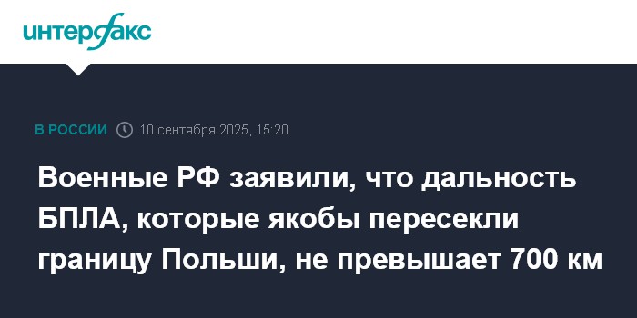 "Максимальная дальность полета применяемых в ударе российских БПЛА, которые якобы пересекли границу с Польшей, не превышает 700 км", - сообщили в военном ведомстве.