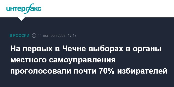 Москва. 11 октября. INTERFAX.RU - Явка избирателей на выборах в органы местного самоуправления, проходящих в Чеченской республики впервые, по данным на 16:00 мск, составила около 69%.
