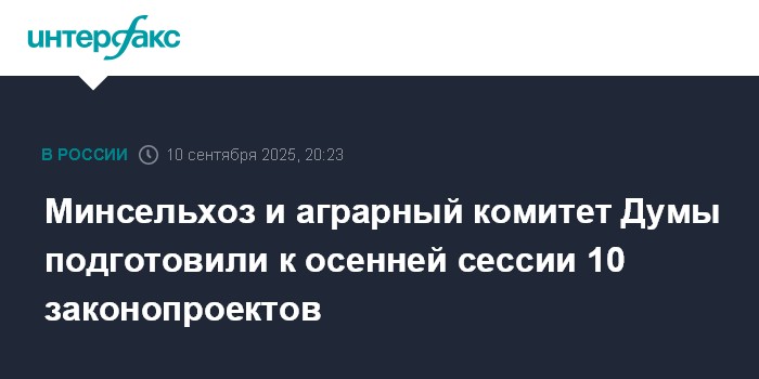 Минсельхоз и аграрный комитет Думы подготовили к осенней сессии 10 законопроектов