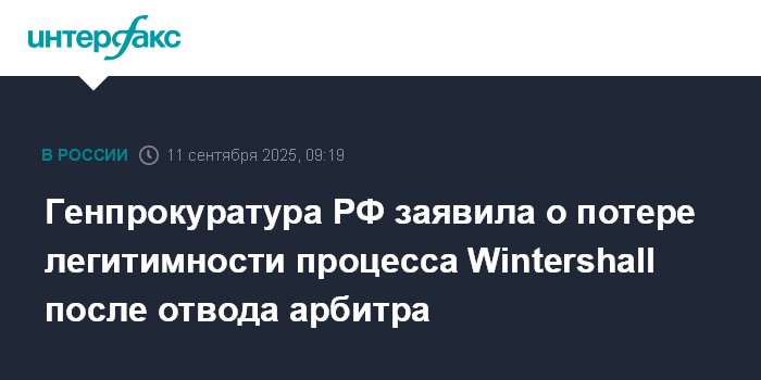 Генпрокуратура РФ заявила о потере легитимности процесса Wintershall после отвода арбитра