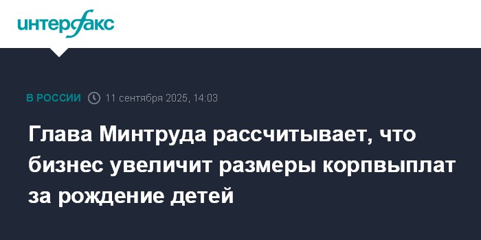 Глава Минтруда рассчитывает, что бизнес увеличит размеры корпвыплат за рождение детей