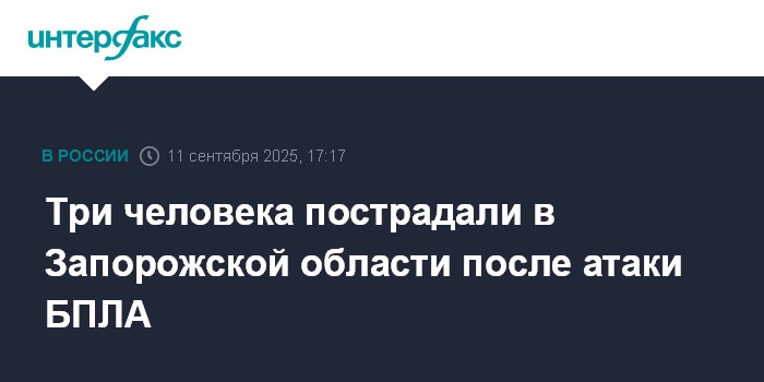 Москва. 11 сентября. INTERFAX.RU - Три жителя Запорожской области получили ранения в результате атаки БПЛА, сообщили в Минздраве региона в четверг.