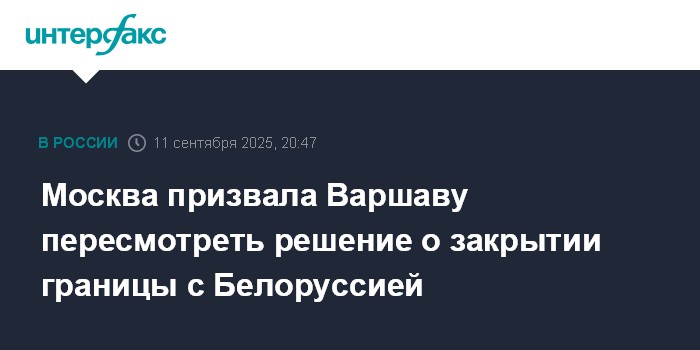 Москва. 11 сентября. INTERFAX.RU - В МИД России призывают Польшу, решившую с 00 часов 12 сентября закрыть все пункты пропуска на границе с Белоруссией, включая автомобильные и железнодорожные, пересмотреть это решение.