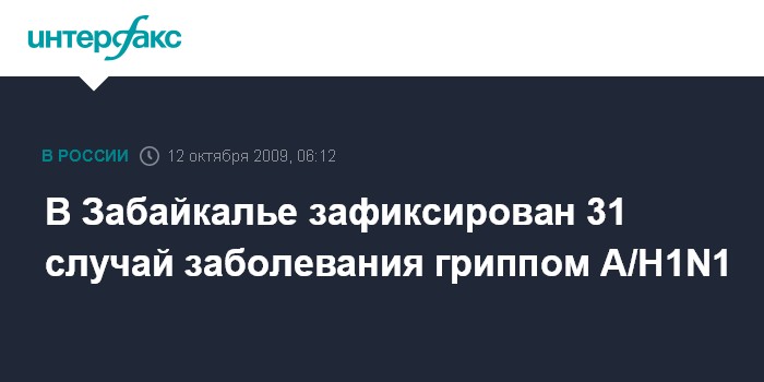 "В Чите на 11 октября подтвержден 31 случай заболевания гриппом A/H1N1", - сообщили агентству "Интерфакс-Сибирь" в краевом управлении "Роспотребнадзора" в понедельник.