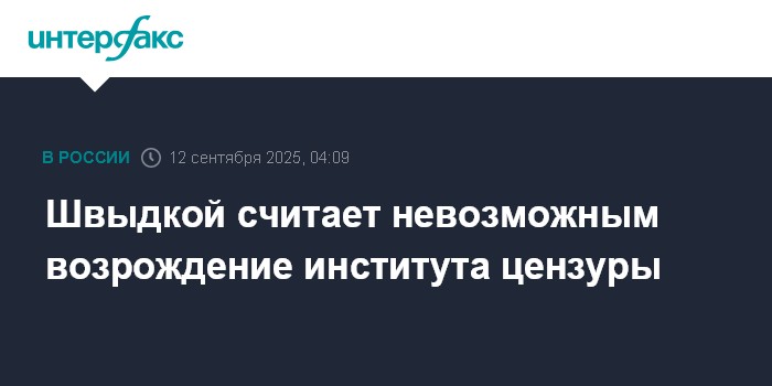 Москва. 12 сентября. INTERFAX.RU - Специальный представитель президента по международному культурному сотрудничеству Михаил Швыдкой в интервью "Интерфаксу" выразил мнение о том, что возрождение института цензуры в РФ невозможно.