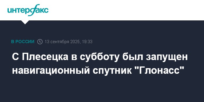 Москва. 13 сентября. INTERFAX.RU - Навигационный спутник "Глонасс" был выведен на орбиту в субботу после запуска с космодрома Плесецк, сообщил гендиректор "Роскосмоса" Дмитрий Баканов.