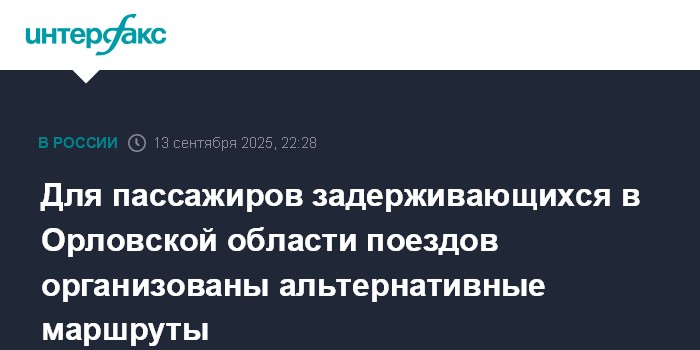 Москва. 13 сентября. INTERFAX.RU - Альтернативные маршруты организованы для пассажиров поездов, задерживающихся в результате детонации взрывного устройства на ж/д путях в Орловской области, сообщает Московская железная дорога в субботу.
