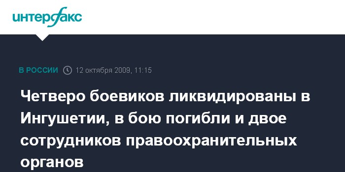 Москва. 12 октября. INTERFAX.RU – В ходе контртеррористической операции на территории Сунженского района Ингушетии уничтожены четыре участника НВФ.