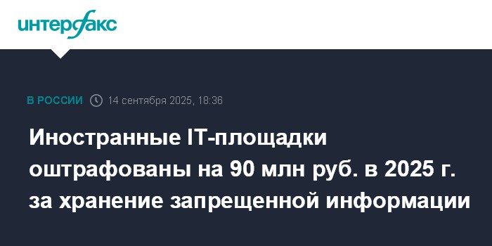Иностранные IT-площадки оштрафованы на 90 млн руб. в 2025 г. за хранение запрещенной информации