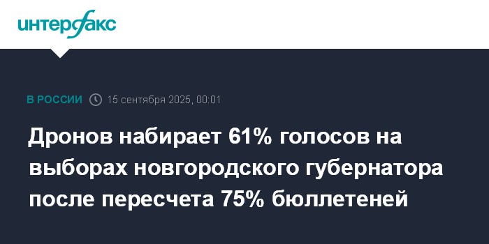 Дронов набирает 61% голосов на выборах новгородского губернатора после пересчета 75% бюллетеней
