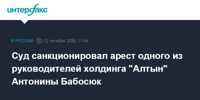Москва. 12 октября. INTERFAX.RU – Лефортовский суд Москвы выдал в понедельник санкцию на арест вице-президента наблюдательного совета ООО "Ювелирный холдинг "Алтын" Антонины Бабосюк, подозреваемой в контрабанде.