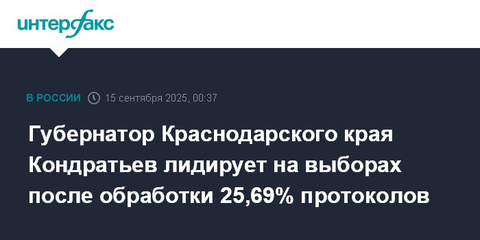 Губернатор Краснодарского края Кондратьев лидирует на выборах после обработки 25,69% протоколов