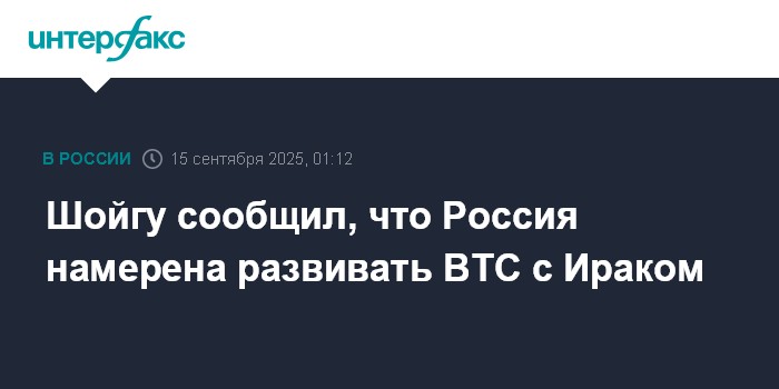 Москва. 15 сентября. INTERFAX.RU - Россия и Ирак имеют серьезный потенциал в сфере военно-технического сотрудничества, Москва также готова модернизировать ранее поставленную Багдаду технику с учетом опыта СВО, сообщил в интервью "Интерфаксу" секретарь Совета безопасности РФ Сергей Шойгу в преддверии рабочей поездки в Ирак.