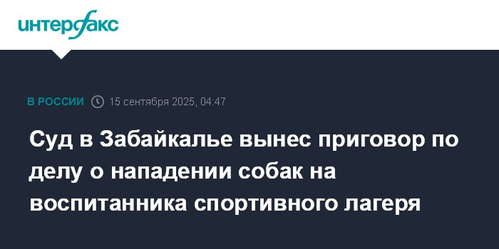 Москва. 15 сентября. INTERFAX.RU - Суд в Забайкальском крае признал директора школы олимпийского резерва и начальника спортивного лагеря виновными по делу о нападении собак на ребенка, мужчин приговорили к условным срокам, сообщает в понедельник региональная прокуратура.