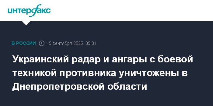 Украинский радар и ангары с боевой техникой противника уничтожены в Днепропетровской области