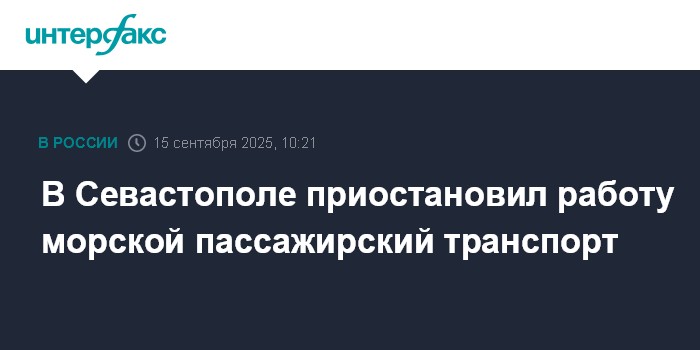 Москва. 15 сентября. INTERFAX.RU - В Севастопольской бухте остановлено движение морского пассажирского транспорта, сообщает дирекция по развитию дорожно-транспортной инфраструктуры Севастополя.