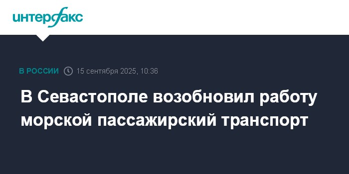Москва. 15 сентября. INTERFAX.RU - В Севастопольской бухте возобновилось движение морского пассажирского транспорта после приостановки, сообщает дирекция по развитию дорожно-транспортной инфраструктуры Севастополя.